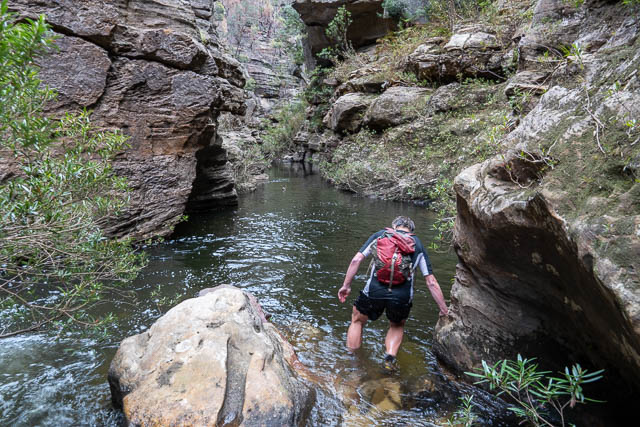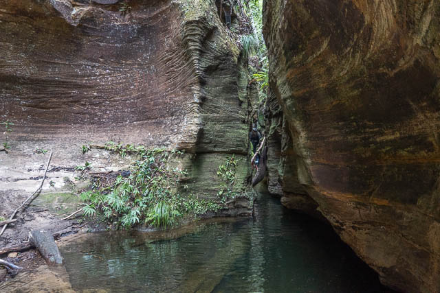We then arrived at the junction with Wollangambe Canyon. I inflated my lilo, but Bob was content to swim through the long pools. The water was not that cold, but the air temperature was not that warm.