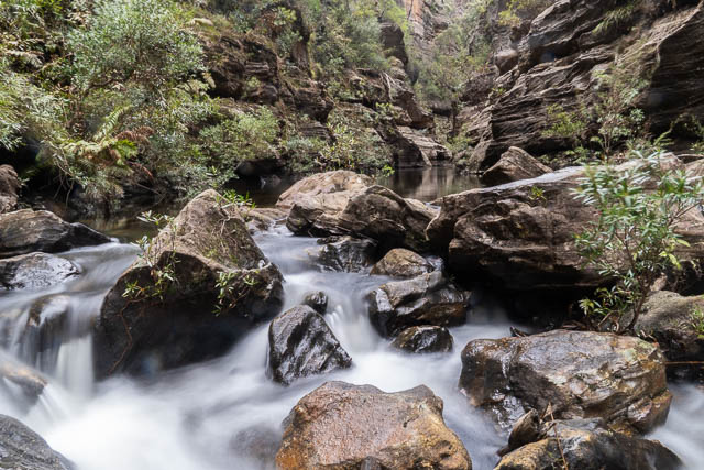 The creek below the first abseil was not burnt out very much. Some trees had fallen down and logs had been moved by floods, but the changes were minor.