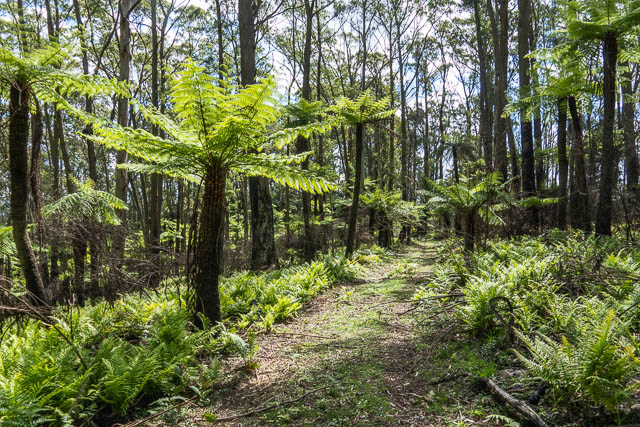 We arrived at Mt Wilson and parked at the Cathedral of Ferns. We were soon on our way, along the fire road to the track leading down to the start of the canyon. Recent rain had resulted in a lot of regrowth after the bushfires.