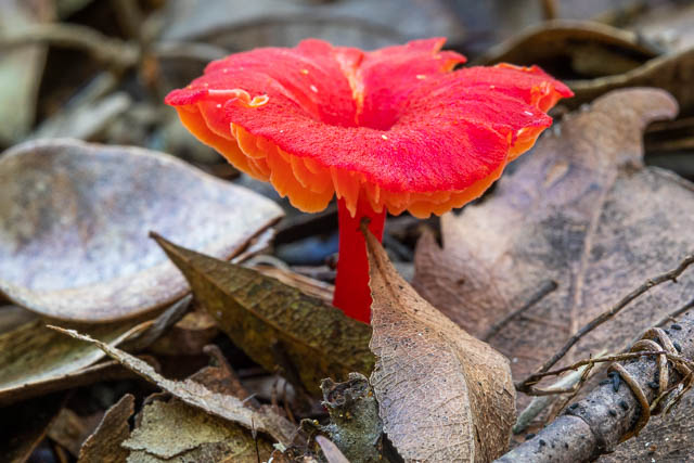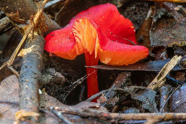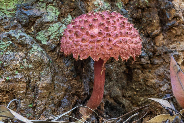 I was able to join Liz for another day hunting for fungi at Birdwood Gully at Springwood. We were on the lookout for some special fungi we had seen last year – in particular a beautiful pink coral fungus, and an interesting gomphus.