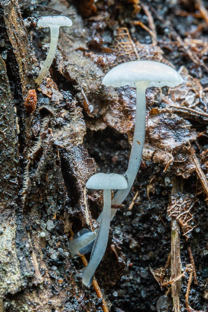 There was really a lot more out than I could photograph. As well as waxcaps, I was looking for the light blue Entoloma viriscens. I found it in two locations. Both places had very tiny ones. The first spot had two, the second one.