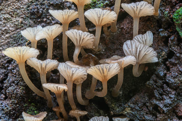 Along the Lane Cove River, I spotted a few Lichenomphalia chromacea growing close to lichen.