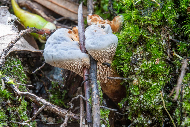 The other notable fungus that I found was a light blue spine fungus that is probably Hydnellum fraudulentum –