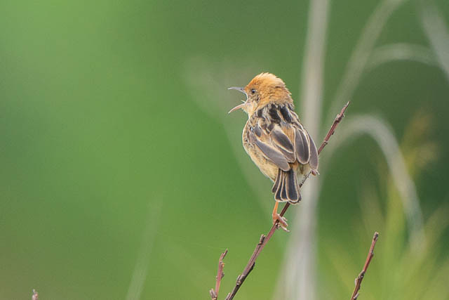 I then could hear the calls of some Golden-headed Cisticolas. One was cooperative and I got some photos as it broadcast its territorial call in all directions.