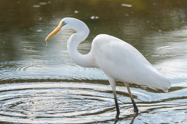 My first stop was at Mason Park Wetlands. In Powells Creek, I again spotted a Great Egret hunting for fish. This time, it caught a very small fish, then flew off into the wetlands.