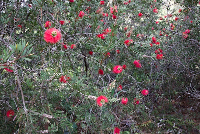 On the way down the Charles Darwin Walk, I was able to enjoy the multitude of wildflowers that were out. Of particular note were the Callistemons (Bottlebrush) with their brilliant red inflorescences.