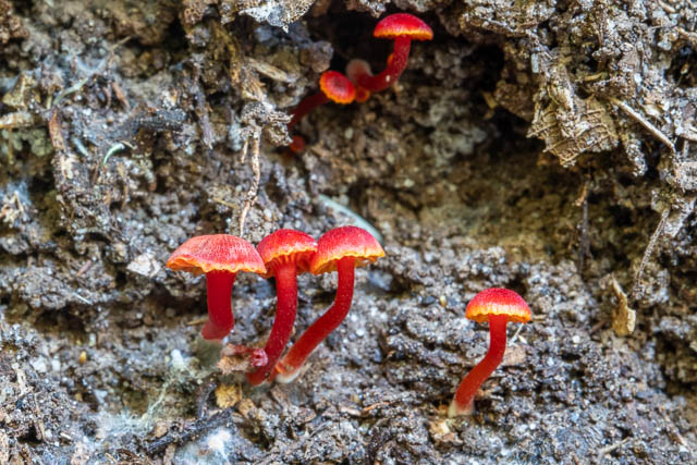 There were also some red waxcaps. I think they are Hygrocybe cantherellus and Hygrocybe erythrocrenata.