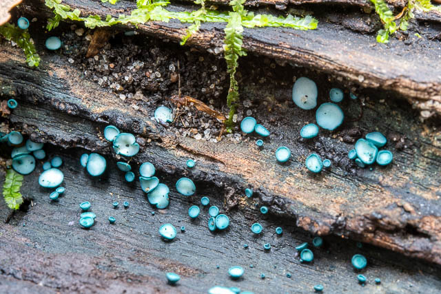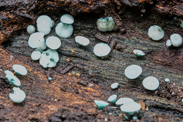 This is Chlorociboria aeruginascens, and it too appears in the same spot.