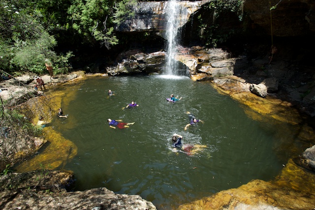 We walked down from the visitor centre, and ten minutes later arrived at the bottom. We walked down the gorge a bit to find a nice shady place to stop and swim. And once cooled off a bit – we continued down to a nice big pool.