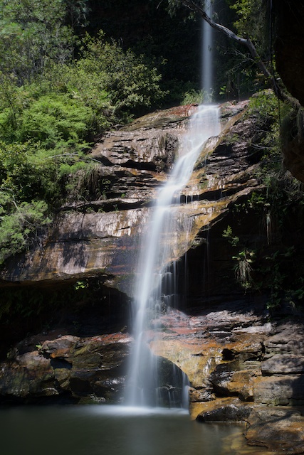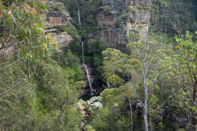 To get there, you have to drive through Yosemite, the suburb to the north of Katoomba. From the carpark, it is only about a 15 minute walk to the falls and on the way you pass a few nice picnic areas. The sign at the carpark had photos showing the falls many years ago and a more recent picture showing the pool at the bottom of the falls now silted up with sand. Previously it had been reported as being “bottomless”.