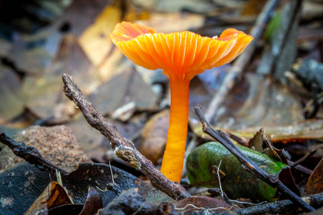 I spotted this cluster on the way out – on the Couranga Track. Hygrocybe sp.