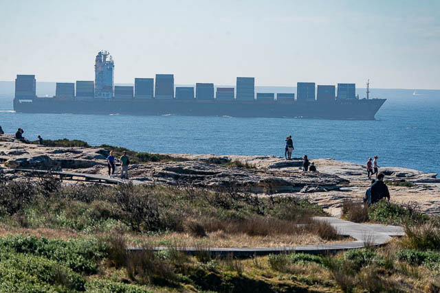 Young Seby was impressed by the whales, but he was far more impressed when a container ship steamed through the heads of Botany Bay.