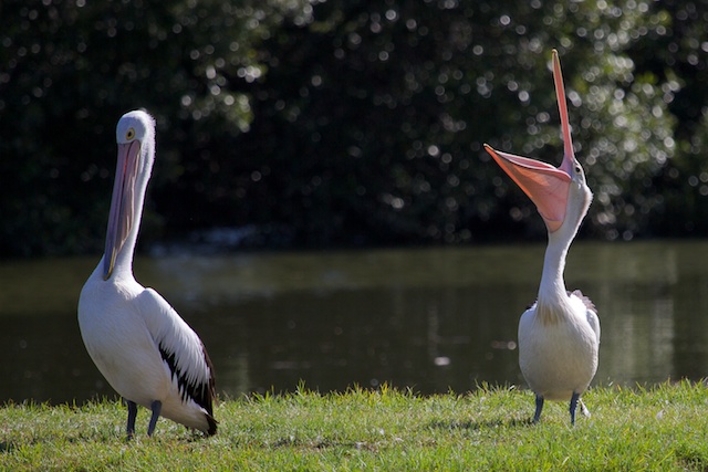Later after I made trip to the Cup and Saucer Creek Wetland, another pelican had joined the three. They paired off – two on either side of the arms of the harbour.