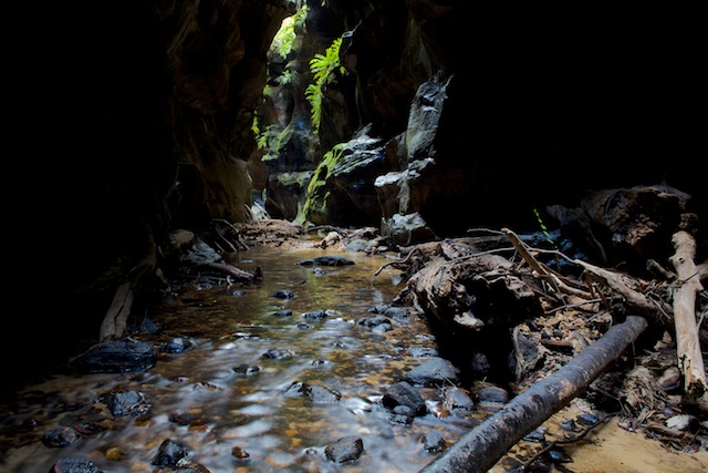 There are many ways into Heart Attack Canyon. We chose a route that took us very close to the start of the canyon. We walked out along a rock ridge out towards a point. From here, you can do a short abseil down the cliff and from there its easy going to the creek, and then about ten minutes walk downstream to the canyon start.