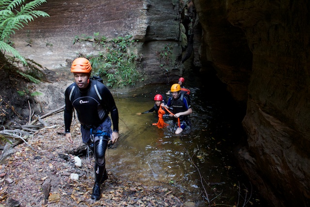Once we reached the Wollangambe River, we headed upstream on a narrow ledge to one of the canyon exits. Before climbing out we stopped for lunch and were entertained by one of the local residents – a water dragon.