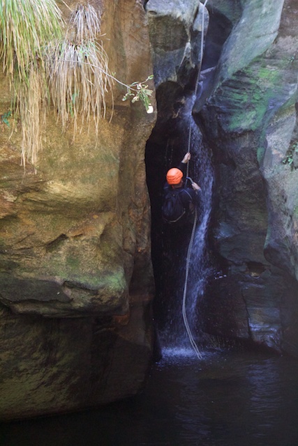 This canyon is popular with beginners because of its easy access and it was quite crowded on the day. However there were no traffic jams, and some of the abseils are optional – they can be scrambled around.