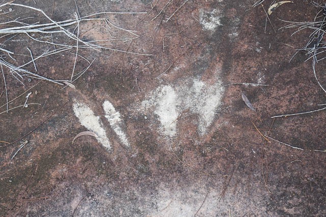 We checked out a few rock platforms near the fire road. One seemed to have small Aboriginal engraving of an Emu footprint.