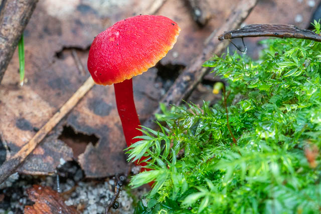 There were some red waxcaps out, mostly small. Hygrocybe sp.