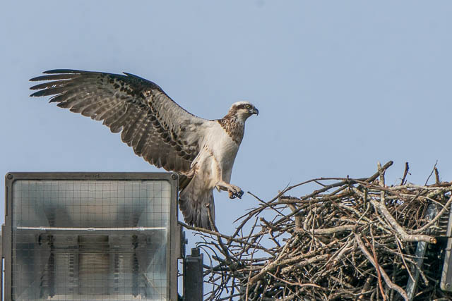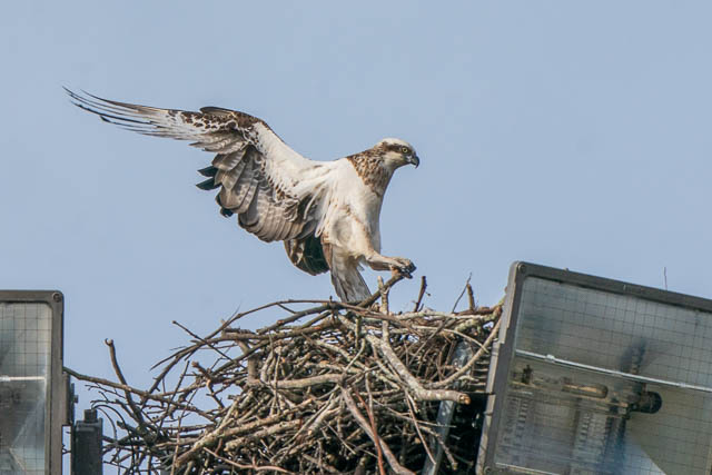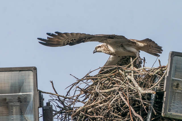 When I reached the sporting field where the Ospreys have their nest, I saw one of the pair settled on the nest.