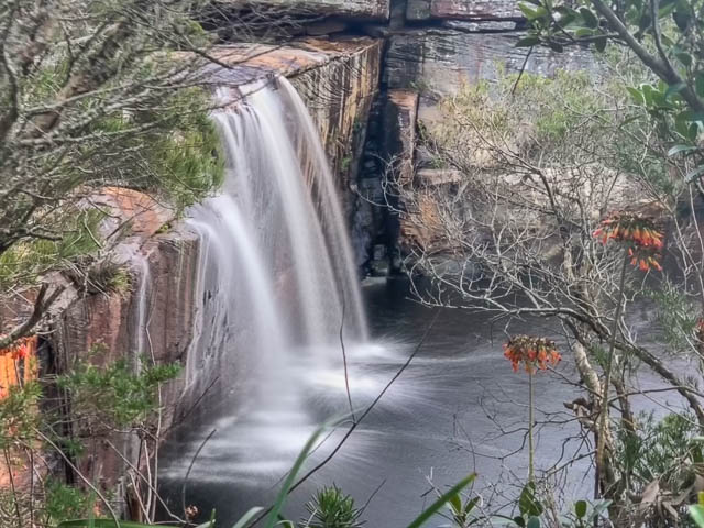 We soon arrived at Wattamolla Creek. This could be crossed with a big step. But not before looking at the waterfall just downstream.