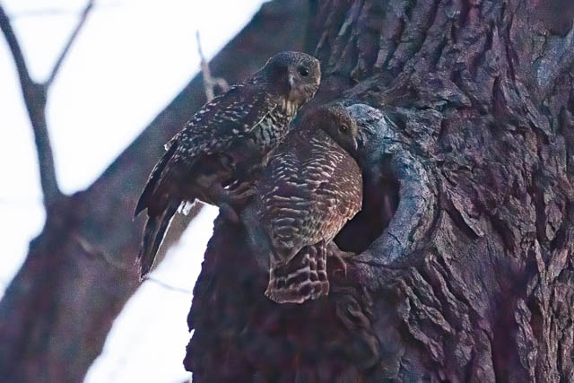On my way home from the Central Coast, I made a side trip to Centennial Park to see how the Powerful Owls were going. I was keen to see if the owlets had fledged, and if not, then it would be interesting to see the parents feeding them at dusk.