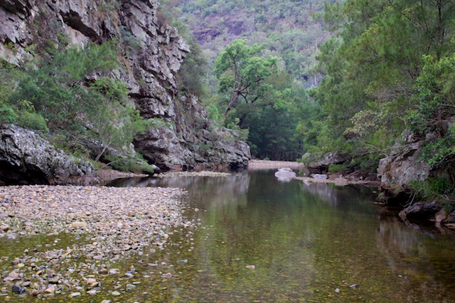 So was the river – despite the low levels and lack of the usual sparkling rapids. The Kowmung in all its moods always has a special beauty. Crystal clear pools, the hanging she oaks and river gums, the grassy banks, the cobbles.