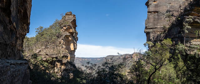 WE then climbed down a small but steep gully to get a better view. I had been here before and knew there was a better view to be had. It took a bit of scrambling to get to some nice lookouts. We had lunch in the shade at this one –
