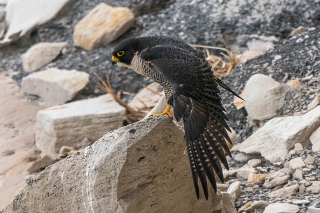 I headed out to the Peregrine Falcon area near Boora Point without seeing too much of interest. I then started looking around for the Peregrine Falcons. I could not see any at first, but a short time later one landed on a ledge below where I was.