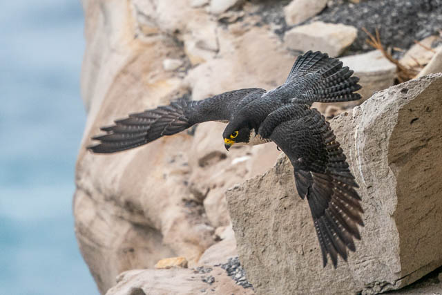 I knew that the bird would not remain on to of the cliffs for long. So I was ready when it took off. Unfortunately it took off away from me.