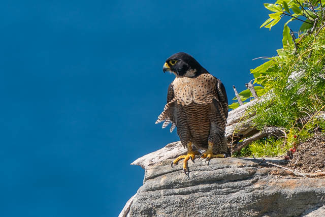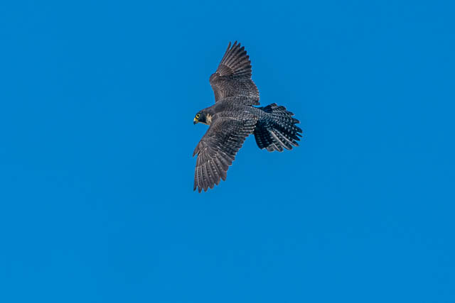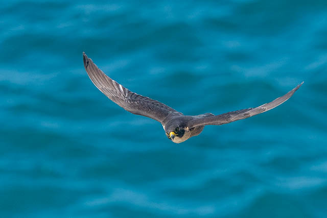 The first place I visited was where Osprey had been nesting. No Osprey were at the nest and it looked like the nest was no longer used. This was the same as a previous visit. I then headed to the sea cliffs to a Peregrine Falcon nesting site. As I approached the nest area, I spotted one of the Peregrine Falcons perched on the cliff. When it saw me, it took off and circled around.