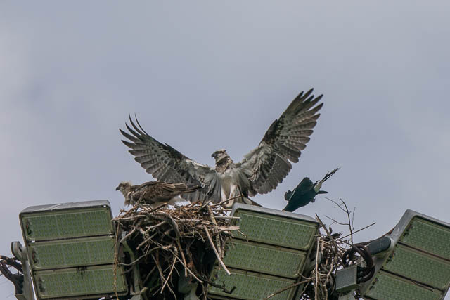 I wonder if the Currawong could have smashed any eggs? The osprey had been reluctant to leave the nest on previous visits. I thought they may have had eggs or chicks.