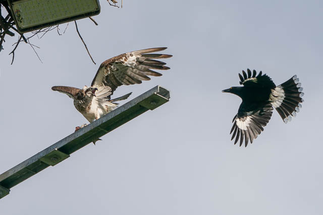 Then all of a sudden a Currawong appeared. It did not seem too friendly with the Osprey.