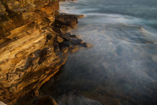 It was nice to watch the sun pop up and for its rays to hit the cliffs. Near Waverley Cemetery, there is a rough trail down to a spot used by fishermen. This was a good place to set up the tripod.