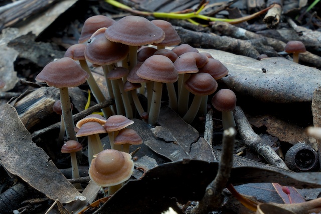 The highest concentration of fungi was in one small spot – in a saddle on the track not far north of Otford, and before the turn off to the Palm Jungle and Burning Palms. In this saddle there was a lot of fungi out, and it was the case of the more you look the more you saw. I originally got my camera and tripod set up to photograph some small interesting looking and colourful fungi, but when I was squatting down I noticed a lot more types that were out – they were less colourful and a lot harder to notice as you walked past.