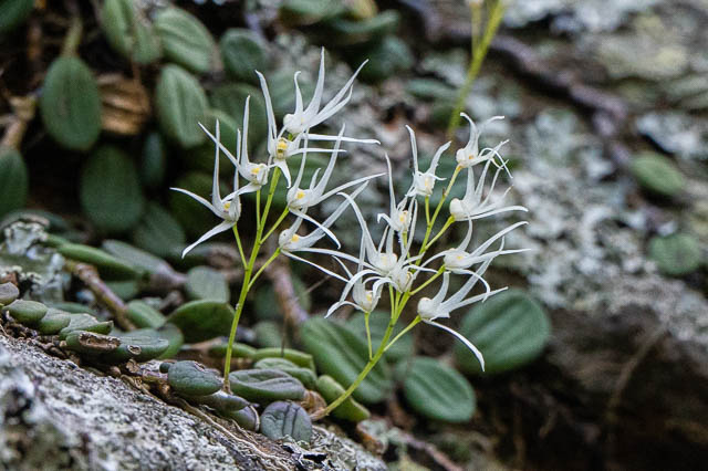 I also saw these nice rock orchids in flower. They were growing in the cliffs above the old swimming pool.