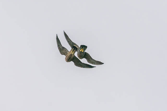 How it was junior’s turn. I didn’t see the juvenile catch the bird – it was out of my view, but it flew past with it.