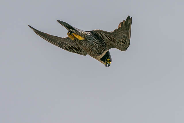 The second lesson seems to involve another passing bird – a Darter. The poor Darter was subjected to a mock attack from the Peregrine Falcons.