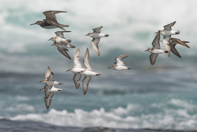 Here are flock of Red-necked Stints and a single Grey-tailed Tattler.