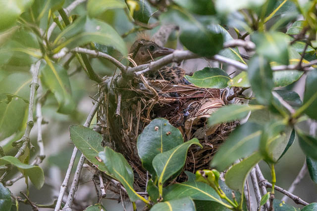 At Gough Whitlam Park, I checked out the Oriole nest I had seen last trip. I could see at least two chicks, possibly three in the nest. Here is one sticking its head up.
