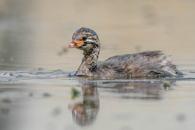 An Australasian Grebe chick and its parent –