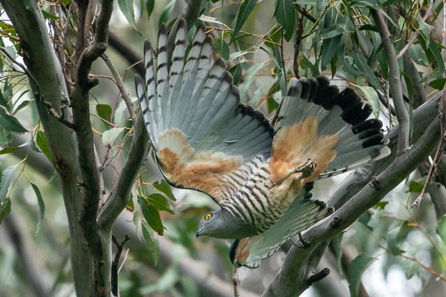 At one time, I heard a commotion. I looked up and saw this Pacific Baza being harassed by Noisy Miners.