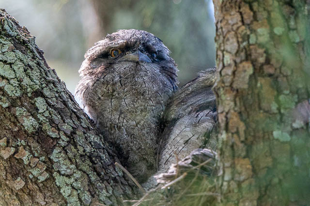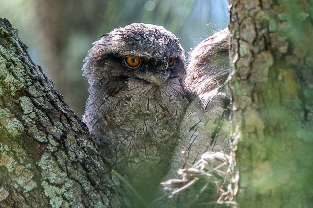 Later that day, after reading a comment on my blog, that mentioned that one of the Boat Harbour Tawny chicks had moved away from the nest, I made a second visit. On the way, I went past the Younger Avenue Tawny – it seemed a little restless.