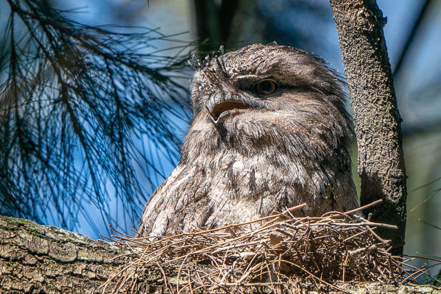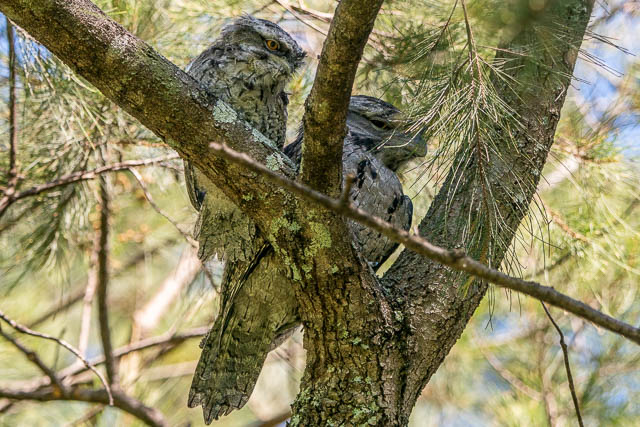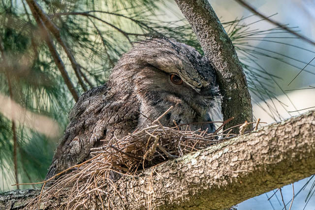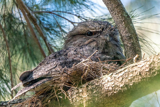 At Younger Avenue, I looked at the nesting pair of Tawny Frogmouths there. No real change from what I could see, however the male sitting on then nest did seem more restless than usual.