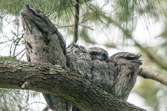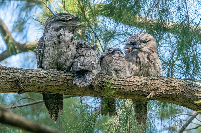 How lovely it is to see all the family of Tawny Frogmouth perched together!