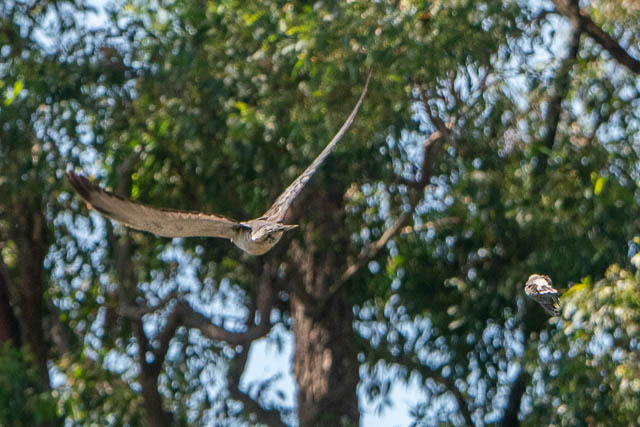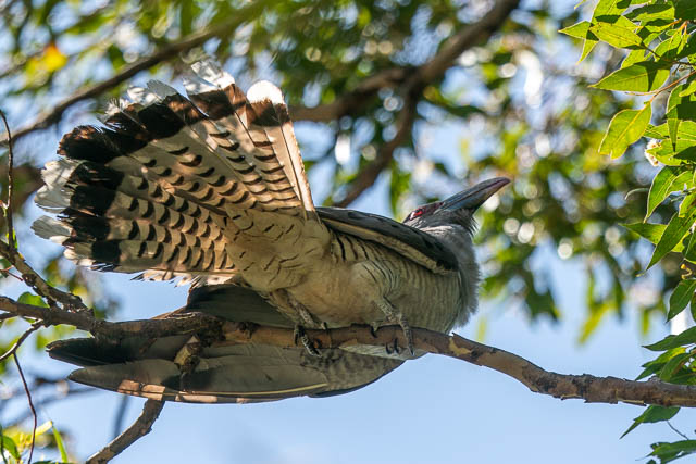 Further upstream, we heard a commotion from a lot of the birds. I though it may be due to a raptor. A bird flew past at high speed, and it was being pursued by Currawongs. We could hear the commotion in some nearby trees, and after a bit of time, we spotted the culprit – not a raptor, but a Channel-billed Cuckoo.