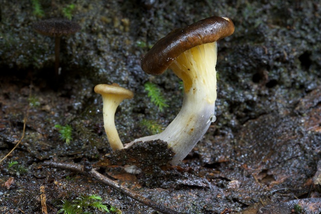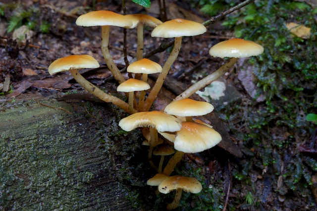 The track below the Cascades is quite delightful and has been well maintained. It goes around a series of ledges above Bridal Veil Falls, the upper of the two Leura Falls, then down to the base of these falls. Then it follows the half way ledge around to Ferny Bower. At the Bower I took the track that descends to Leura Forest. This goes past two delightful waterfalls – Linda Falls and Marguerite Falls. Nearby, a lot of fungi was out. A good place to set up the tripod once more and swap to the macro lens.