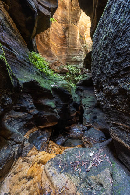 Between the upper and lower constrictions is a walk through nice creekbed, boulders and sandy patches. The bushfires don’t seem to have been too intense here, and there was still a fair amount of shade.