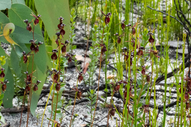 The walk out was not too bad in the heat. We all looked out for orchids and we found quite a few clusters of Flying Duck Orchids – both large and small ones –