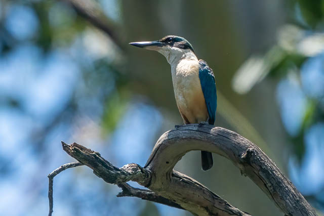 I saw a good range of birds during my visit. Two species I always hope to see at Nurragingy are Azure Kingfishers and Blue-faced Honeyeaters. I didn’t see any of the honeyeaters, and I had a fleeting glimpse of an Azure Kingfisher – but didn’t manage to get a photo. But despite this, I was delighted to see a lot of other nice birds. When I arrived, I could hear the call of a Sacred Kingfisher. It was in the same place I had seen a pair on an earlier trip, and sure enough, there were two perched close together.