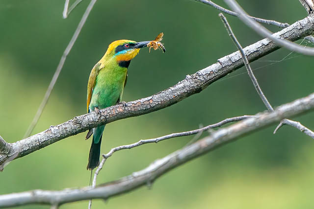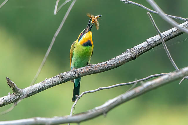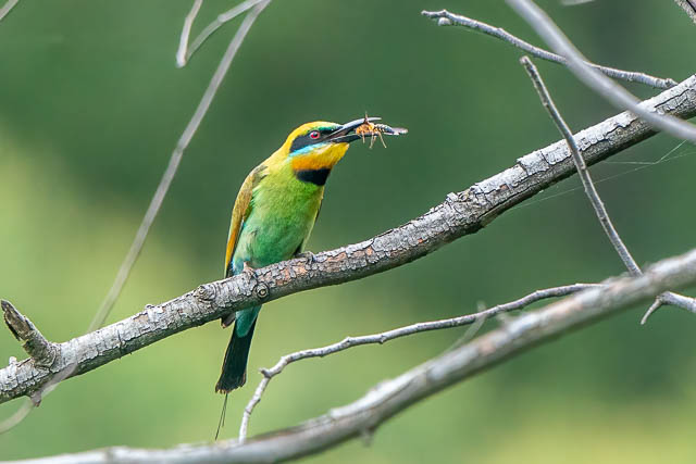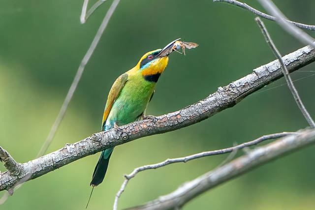 On my last few visits to Emu Green, the Rainbow Bee-eaters have been hard to spot. This time I saw one straight away, but in a different area to where I had seen them before. It was a long way away however.